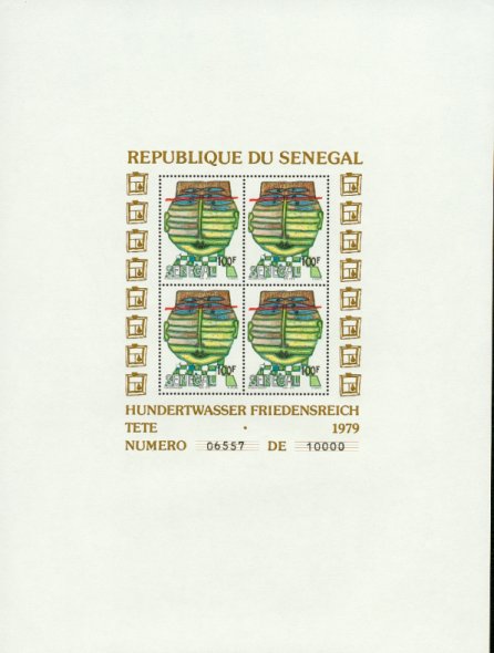 The Senegal stamps were issued in regular sheets for mailing, as well as these highly sought-after numbered souvenir sheets. Imperforate and unnumbered souvenir sheets also exist (but at some point, I need to turn my scanner off! ;-)).