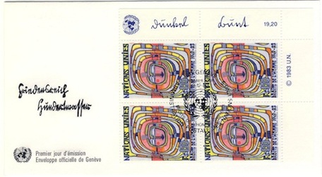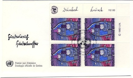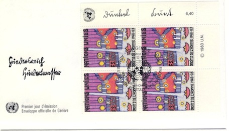 The Geneva stamp Right to Create won the Premio Internazionale Asiago d’arte filitelica for the best stamp in the world that year.