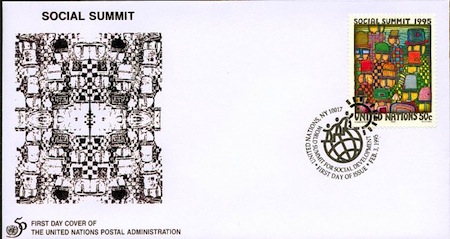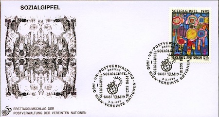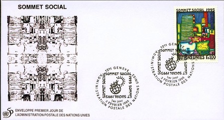 Bizarrely, the entry for this stamp in the Hundertwasser catalogue raisonne cites two versions, a New York issue with a face value of 50¢ and a Geneva issue of SFr 0.80. There are two problems with this: no New York issue of this stamp is known to exist and the Geneva issue (even the two pictures of it in the catalogue) show the face value to be SFr 1. If anyone can shed light on this, I’m all ears, but it seems like the catalogue raisonne is mistaken.