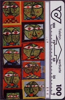 In January through April, 1993, Austria released 4 different telephone cards (one each month) with a different image on each side of each card. If you put them together correctly, you get the two pictures below of the “long man”.